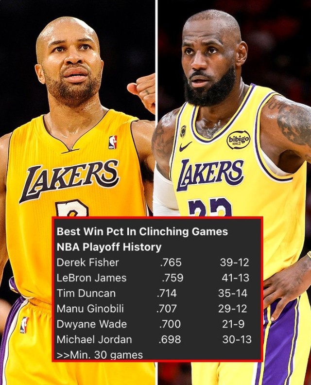 据统计,詹姆斯职业生涯在有机会终结系列赛的比赛中总战绩为41胜13负,胜率为75.9%,历史第二高,仅次于费舍尔(76.5%)。